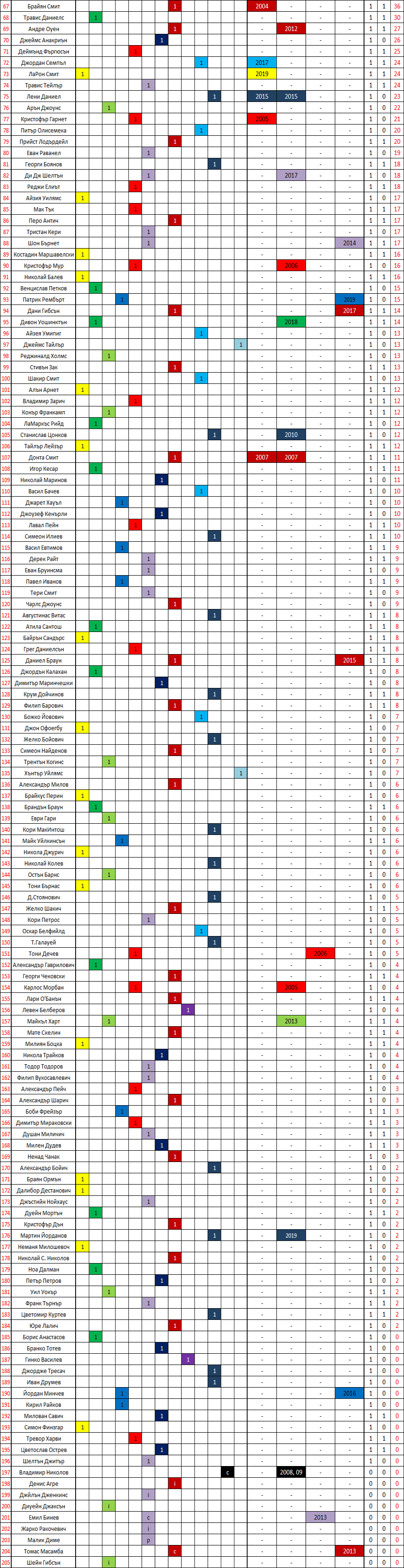 КЛАСАЦИЯ ПО БРОЙ УЧАСТИЯ В МАЧА