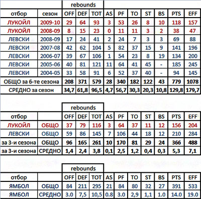 Още нещо много показателно за израстването на националният ни център през настоящия сезон. Споменатите му статистически показатели не само са значително по-високи в сравнение с предходния сезон. Те надвишават и сборът от резултатите от предходните му три редовни сезона (по сезон и половина в Левски и Лукойл) взети заедно.