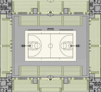 Новата зала ще разполага с четири зрителски трибуни, от всички страни на игралното поле. Тези по дължина е предвидено да бъдат с девет реда и още седем подвижни. Зад двата коша ще са разположени зрителски трибуни с осем реда.