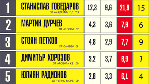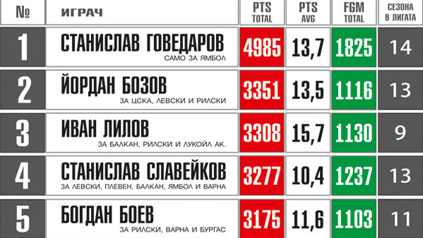 С.Говедаров е играчът в българското първенство с най-много отбелязани точки за последните 14 редовни сезона.