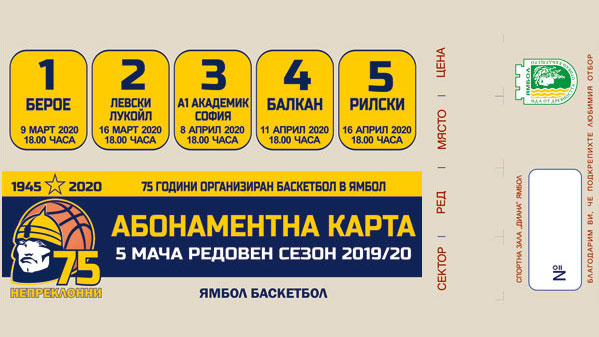 В продажба са абонаментни карти за петте домакински мача на Ямбол до края на редовния сезон.